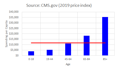 - Annual healthcare costs increase with age