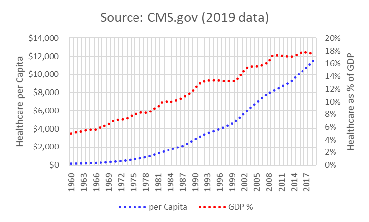 - Healthcare spending increased from (1960 to 2019):