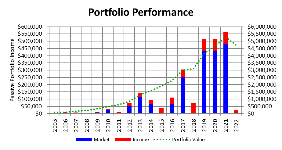 Some people believe that living on less than $100,000 per year is paltry, but understand that living on $100,000 per year would require a $4,000,000 portfolio. I monitor my portfolio’s passive income, noted in the chart below.
